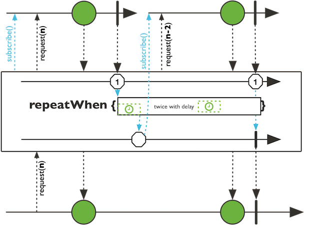 predicatepublic final Flux<T> repeatWhen(Function<Flux<Long>,? extends Publisher<?>> whenFactory)
